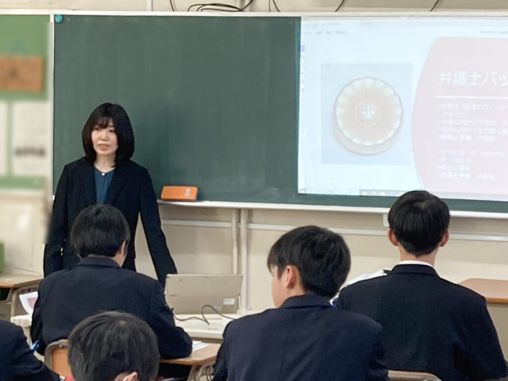 弁護士というと裁判のイメージが強いかもしれませんが、実際にはもっと幅広い業務があることを知ってほしいと思い、経験談を交えてお話ししました。少しでも興味を持っていただけたら嬉しいです。皆さんが最後まで真剣に聞いてくださり、私自身も元気をいただきました。